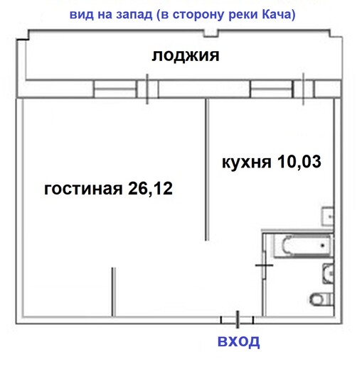 Продается отличный вариант 1-комнатной квартиры. Имеется лоджия с двумя выходами: из кухни и из гостиной. Вид из окна на запад, в сторону р.Кача. Высокий первый этаж. Ремонт от застройщика – заезжай и живи. Частично меблированная. Сан.узел полностью в кафеле.