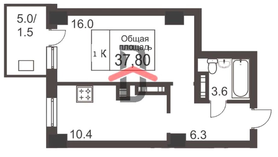 - Площадь 36,4