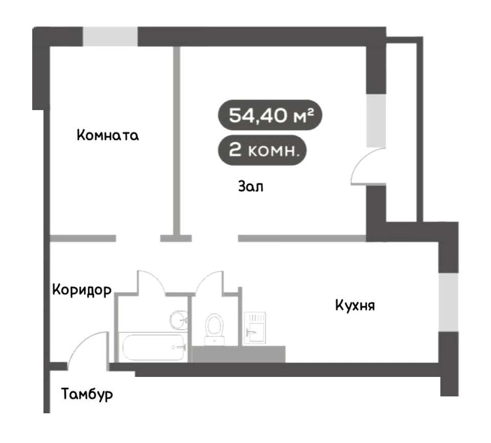 Продается 1-комн. квартира, 54.2 м2