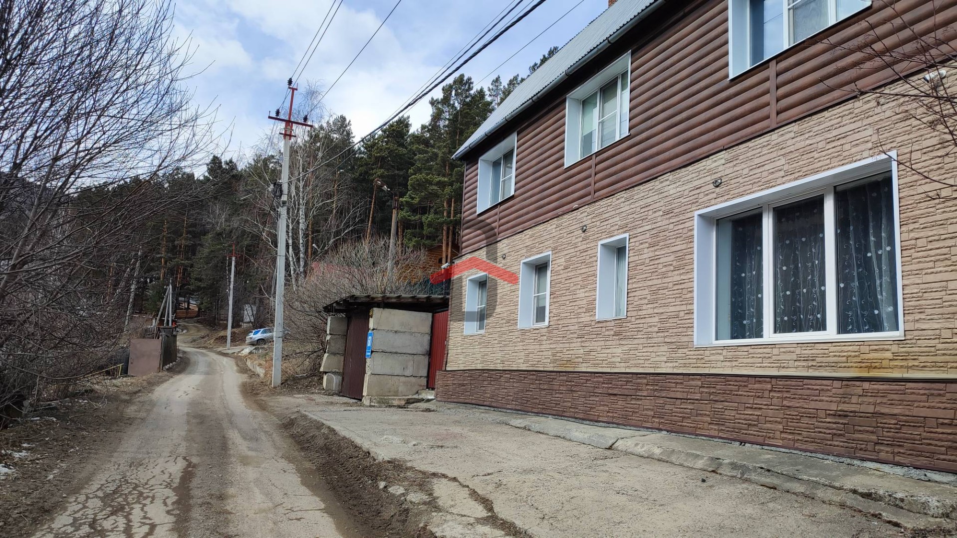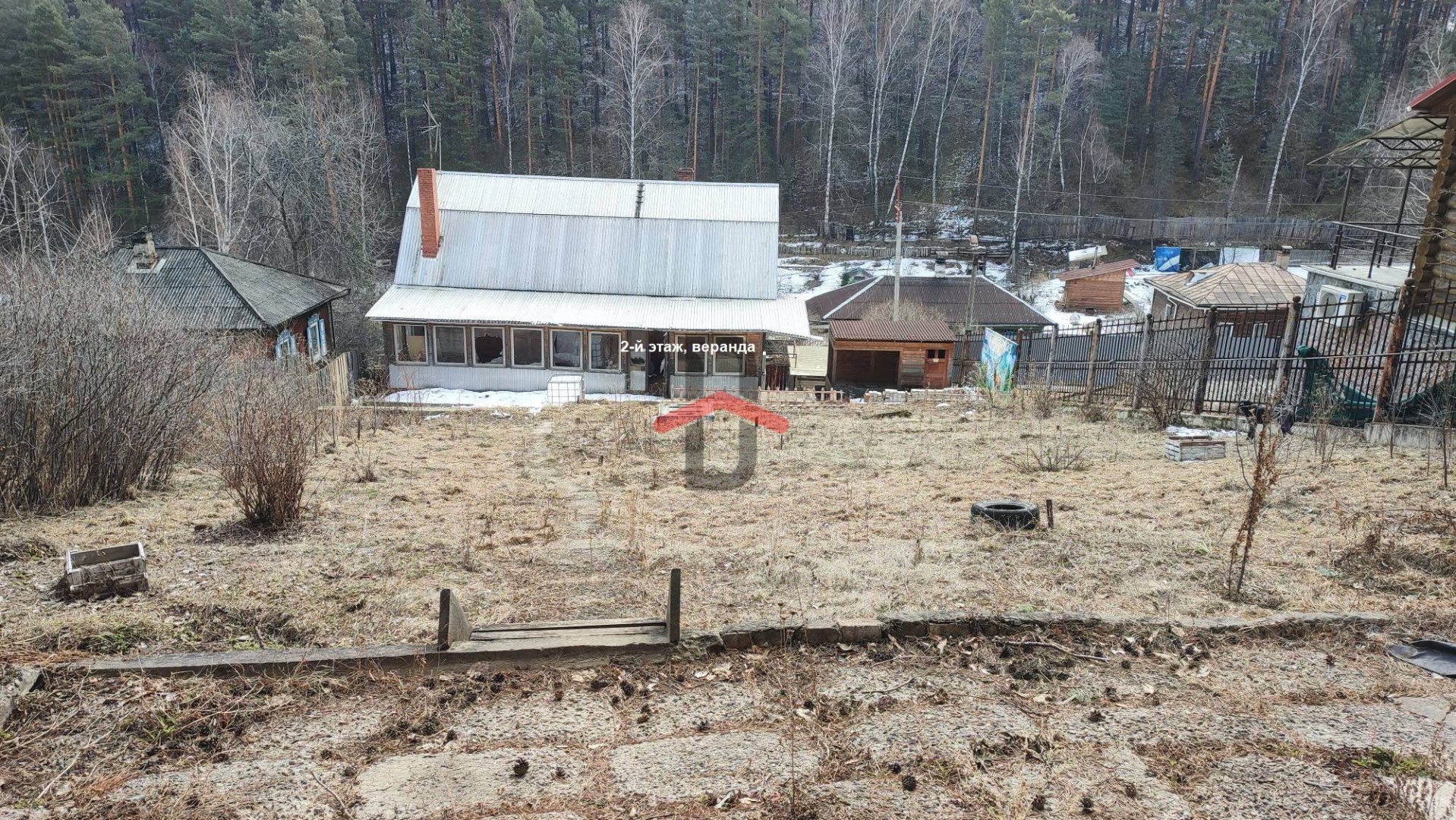Рядом с домом находится гараж (недостроенный).