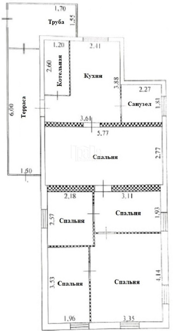 В доме 5 кoмнат, кухня и 2 подвала. Водоснабжение: центральное Отопление: установлен твердотопливный котёл длительного горения. Канализация: септик