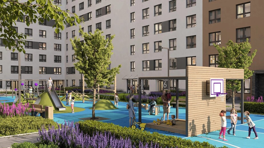 Дома переменной этажности: от 10 до 24 этажей. Благодаря разной высоте во дворе и в квартирах всегда много солнца.